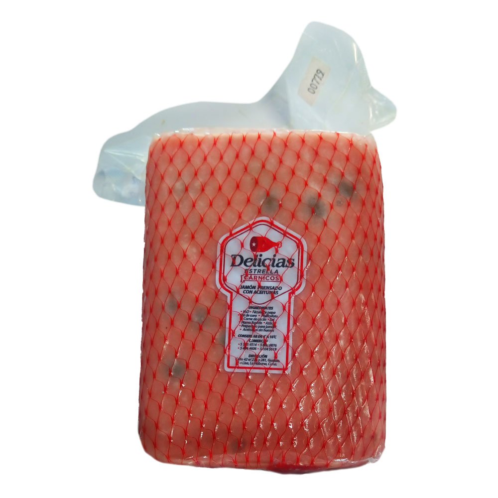 Jamón Prensado con Aceitunas Malla Roja – 3Lb – Delicias Estrella